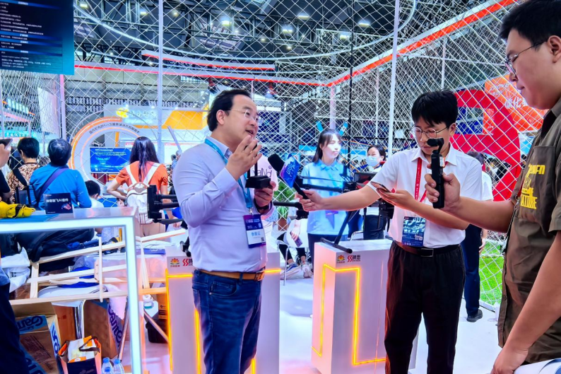 展會(huì)現(xiàn)場(chǎng),設(shè)置“智能體智闖旋關(guān)”與“智能體智探幻陣”游戲,讓觀眾體驗(yàn)“具身智能、空間智能、自主決策”及“空地協(xié)同多智能體聯(lián)動(dòng)”全自主無人系統(tǒng)的強(qiáng)大能力。在“智能體智闖旋關(guān)”游戲環(huán)節(jié),4位持有民航局頒發(fā)的小型多旋翼無人機(jī)超視距駕駛員證書的專業(yè)選手與“神思智飛”展開精彩對(duì)決。最終“神思智飛”順利完成比賽,專業(yè)選手均未能完成挑戰(zhàn)任務(wù),在這場(chǎng)人工操控與AI技術(shù)的對(duì)弈中,“神思智飛”大獲全勝。