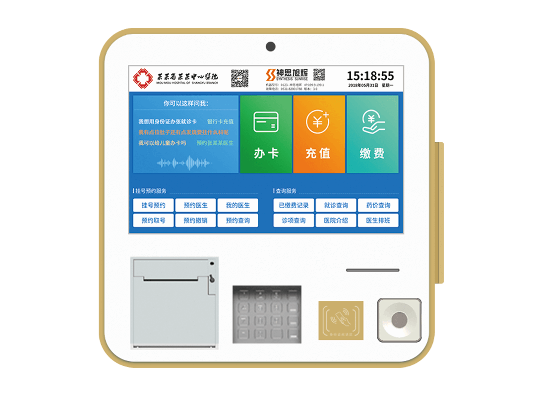 液晶顯示:支持就診人員信息、醫(yī)生信息、醫(yī)院公眾號、支付信息顯示